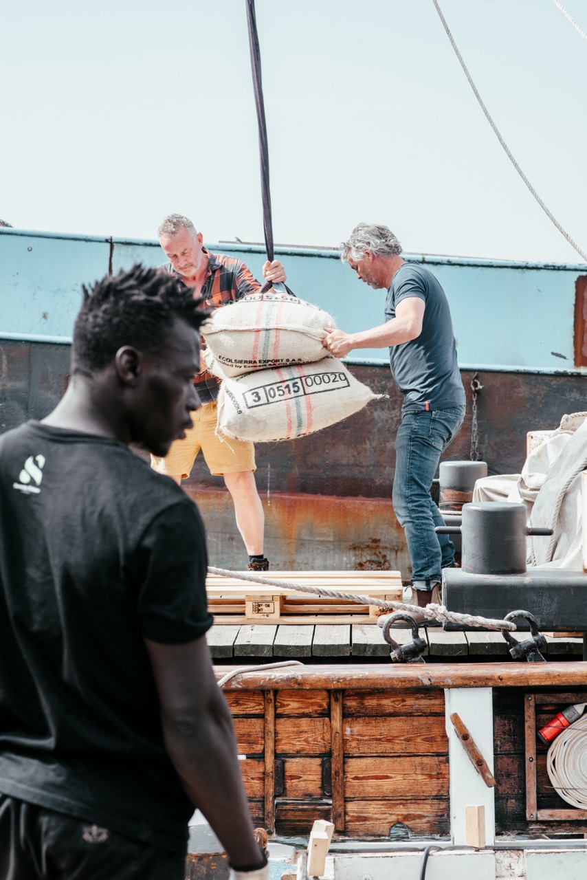 During the Covid pandemic, Huib began converting the sailing vessel Ide Min into a cargo ship, reviving the tradition of wind-powered transport. One of the first products carried on this new route was coffee, and that’s how Kaap Koffie was born.